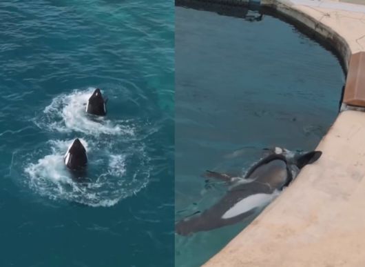 프랑스의 폐쇄된 해양동물원에 남겨진 범고래 모자가 촬영용 드론을 보자마자 반가운 듯 몸을 움직이며 다가오는 영상이 안타까움을 샀다. 외부와 단절된 채 방치된 두 범고래는 기척을 느끼자 배를 뒤집거나 수조를 따라 헤엄치며 묘기를 펼치는 모습을 보였다.