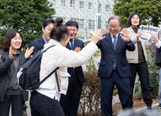 김석준 부산교육감(오른쪽에서 2번째)이 13일 부산교육청 22지구 제15시험장인 부산 연제구 연산동 연제고등학교 정문 앞에서 수능 수험생을 응원하고 있다./사진제공=부산교육청 부산=노수윤 기자 jumin274@mt.co.kr Copyright ⓒ 머니투데이 & mt.co.kr. 무단 전재 및 재배포, AI학습 이용 금지.