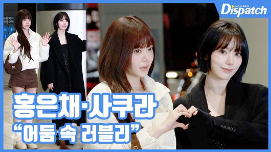 '르세라핌(LE SSERAFIM)' 홍은채, 사쿠라가 러블리한 비주얼로 공항을 빛냈다. 홍은채, 사쿠라가 해외 일정을 위해 13일 오후 김포국제공항을 통해 일본 도쿄로 출국했다. 이날 홍은채와 사쿠라는 합체 손하트를 선보이며 남다른 케미를 과시했다. <영상=장인희기자> <저작권자 © 디스패치, 무단전재 및 재배포 금지>