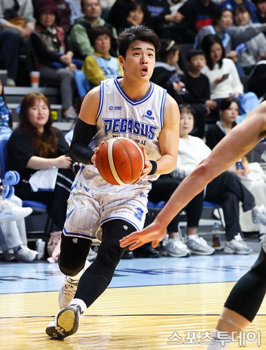 [고양(경기)=스포츠투데이 팽현준 기자] 13일 경기도 고양체육관에서 열린 2025-2026 프로농구 고양 소노와 대구 한국가스공사의 경기, 한국가스공사 정성우가 슛을 하고 있다. 2025.11.13. [스포츠투데이 팽현준 기자 sports@stoo.com]
