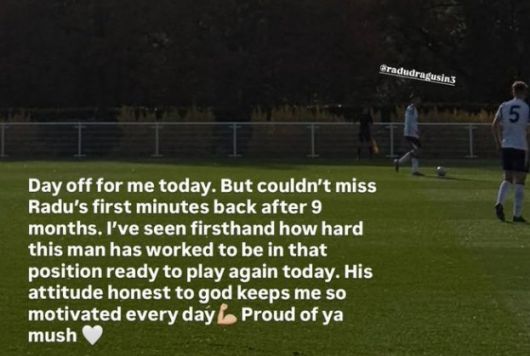 이처럼 드라구신이 길었던 부상의 터널에서 빠져나오자, 제임스 매디슨이 환하게 응답했다. 매디슨은 자신의 사회관계망서비스(SNS)를 통해 "오늘은 나의 휴일이다. 하지만 오랜만에 드라구신이 경기하는 모습을 놓칠 수 없었다. 그가 오늘 다시 경기에 출전하기 위해 얼마나 많은 노력을 했는지 봤다. 드라구신의 행동과 진심은 나에게 큰 힘이 된다. 너가 자랑스럽다"라며 헌사를 전했다.