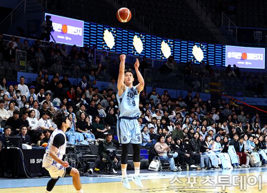 [고양(경기)=스포츠투데이 팽현준 기자] 13일 경기도 고양체육관에서 열린 2025-2026 프로농구 고양 소노와 대구 한국가스공사의 경기, 소노 정희재가 3점슛을 시도하고 있다. 2025.11.13. [스포츠투데이 팽현준 기자 sports@stoo.com]