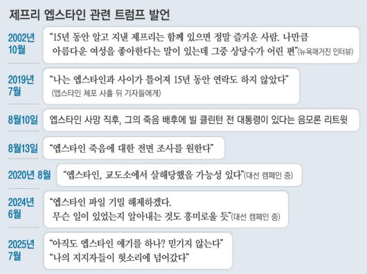 역대 최장 기간 지속된 미국 연방정부 셧다운(업무 일시중지)이 종료된 12일(현지시간) 도널드 트럼프 대통령과 미성년자 성착취범 제프리 엡스타인(사진)의 관계를 보여주는 파일 일부가 공개되면서 파장이 일고 있다. 미 정치권이 내년 11월 중간선거 준비에 돌입하는 상황에서 엡스타인 파일이 트럼프 대통령과 공화당에 뇌관이 될 수 있다는 분석이 제기된다.