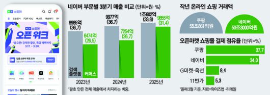 검색을 중심으로 성장해온 네이버는 최근 몇 년간 쇼핑·결제·리뷰·AI 추천 기능 등을 고도화하며 온라인 거래액을 키웠다. PC나 모바일 네이버 앱을 중심으로 여러 물건을 판매하고 중개 수수료를 얻는 ‘오픈마켓’ 사업을 영위하다 올해 3월에는 쇼핑 전용 앱 ‘네이버플러스 스토어’를 출시했고, 출시 8개월 만에 월간활성이용자수(MAU) 525만명에 도달할 정도로 급성장했다.