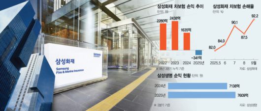 실제로 삼성화재를 포함한 대형 손보사들의 올 9월 자동차보험 손해율은 94%를 넘어서며 2020년 관련 집계 이후 최고치를 기록했다. 보험 업계에서는 자동차보험 손익분기점에 해당하는 손해율을 80% 수준으로 보고 있다. 이를 넘어서면 사실상 적자 구간으로 진입하는 셈이다. 자동차보험 수익 악화는 전체 실적을 끌어내리는 악재가 되고 있다. 삼성화재의 3분기 순이익은 전년 동기 대비 2.9% 감소했고 누적 순이익 역시 4.4% 줄어들었다.