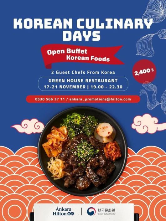 [서울=뉴시스] 최희정 기자 = 튀르키예한국문화원은 오는 17일부터 21일까지 앙카라 힐튼 호텔과 공동으로 '한식주간(Korean Culinary Days)' 행사를 개최한다고 14일 밝혔다.