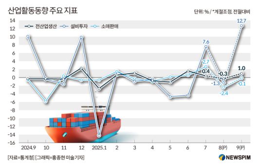 9월 전산업생산은 전월 대비 1.0%, 1년 전보다 6.7% 상승했다. 건설업이 전월 대비 11.4% 높은 증가율을 보인 게 특징이다.