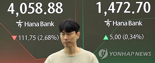 지수는 전장 대비 108.72포인트(2.61%) 내린 4,061.91로 시작해 한때 4,052.26까지 밀리기도 했다.