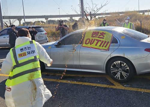 피해대책위는 이날 이곳에서 열린 메르세데스-벤츠 콘퍼런스 행사장 앞에서 벤츠 측이 대여한 벤츠 차량에 달걀과 밀가루 등을 던지기도 했다.