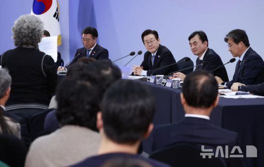 [파주=뉴시스] 최동준 기자 = 이재명 대통령이 14일 경기 파주시 라이브러리스테이 지지향에서 열린 '경기 북부의 마음을 듣다' 타운홀 미팅에서 참석자의 질문을 듣고 있다. 2025.11.14. photocdj@newsis.com