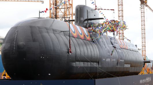 한화오션 거제사업장에서 장보고-Ⅲ Batch-Ⅱ 1번함인 장영실함 진수식이 열리고 있다. 톤수 약 3600톤, 길이 약 89m인 장영실함은 대한민국 기술로 건조된 세계 최고 수준의 디젤 잠수함으로 한층 강화된 정밀 타격 능력과 수중작전능력을 바탕으로 다양한 안보위협에 효과적으로 대응 가능하다. 사진 뉴스1 |