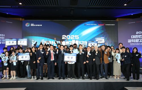방송미디어통신위원회가 14일 서울에서 사회 문제에 대한 국민 공감대 형성 및 실천의식 제고를 위해 '2025 대한민국 공익광고제'를 열고 수상자들과 기념촬영을 하고 있다. [방송미디어통신위원회 제공. 재판매 및 DB 금지] |