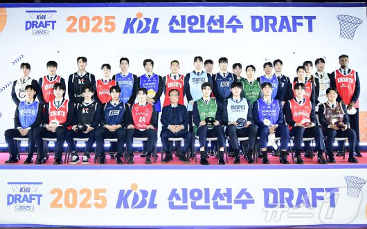 (서울=뉴스1) = 14일 오후 서울 송파구 잠실학생체육관에서 열린 2025 KBL 신인선수 드래프트에서 10개 구단의 선택을 받은 선수들이 기념 촬영을 하고 있다. (KBL 제공. 재판매 및 DB 금지) 2025.11.14/뉴스1pjh2035@news1.krCopyright ⓒ 뉴스1. All rights reserved. 무단 전재 및 재배포, AI학습 이용 금지.