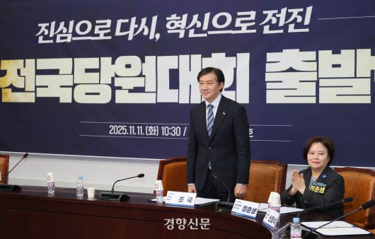 조국 전 조국혁신당 비상대책위원장이 지난 11월 11일 국회에서 열린 전당대회 출발식에서 인사하고 있다. 박민규 선임기자 |