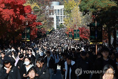 (서울=연합뉴스) 홍해인 기자 = 15일 서울 종로구 성균관대에서 이 학교 2026학년도 수시모집 논술시험을 마친 수험생들이 고사장을 나서고 있다. 2025.11.15