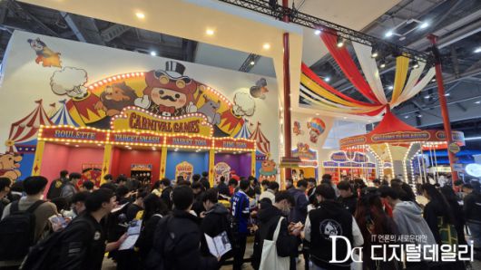 특히 대형 회전목마는 관람객들의 사진 촬영이 이어지며 행사장 내 대표 명소로 자리잡았다. 실제 놀이기구 형태로 구현된 해당 구조물 앞에는 사진 촬영을 위해 모인 관람객들로 연일 붐볐다. 지스타 2025에 방문한 김민석 국무총리, 정청래 더불어민주당 당대표 등도 놀이기구에 올라 기념사진을 촬영해 눈길을 끌었다.