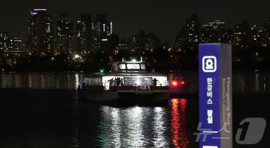 (서울=뉴스1) 김진환 기자 = 15일 서울 송파구 잠실선착장 인근에 한강버스가 강바닥에 걸려 멈춰 서 있다. 앞서 이날 오후 8시 24분쯤 잠실방향으로 운항 중이던 한강버스가 선착장 인근 수심이 얕은 곳을 지나다 강바닥에 걸려 멈췄다. 이에 따라 소방 당국과 서울경찰청 한강경찰대가 출동해 80여명의 탑승객을 구조했다. 이 과정에서 인명피해가 발생하진 않은 것으로 알려졌다. 서울시는 정확한 경위를 조사할 방침이다. 2025.11.15/뉴스1