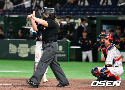 젠 파월 주심이 피치클락 위반으로 스트라이크를 선언하고 있다. 2025.11.15. /cej@osen.co.kr