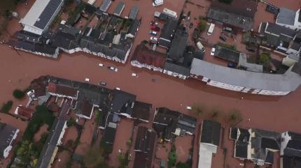 '중대 재해' 지역으로 선포된 영국 웨일스 몬머스 등지에서는 지난 금요일부터 토요일까지 이어진 호우로 강이 범람해 마을이 물에 잠겼습니다.