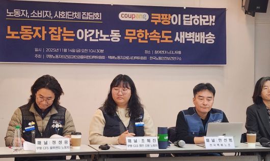 쿠팡 노동자의 건강과 인권을 위한 대책위원회, 택배노동자 과로사 대책위원회, 한국노동안전보건연구소는 14일 오전 서울 종로구 참여연대에서 ‘노동자 잡는 야간노동 무한속도 새벽배송, 노동자·소비자·사회단체 집담회’를 열었다. 여기에는 쿠팡에서 주문한 물건이 이른 아침 고객의 집 앞에 배송되기까지, ‘보이지 않는 컨베이어벨트’ 역할을 하는 야간노동자들의 증언이 잇따랐다.