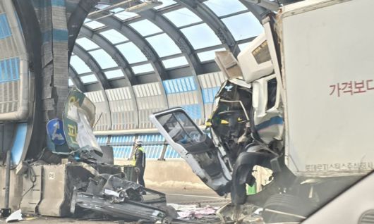 16일 오전 8시 52분쯤 경기 성남시 분당구 용인서울고속도로 용인방향 서판교IC 인근에서 11t 트럭이 분리대를 충격했다.