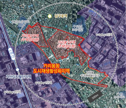 가리봉동 도시재생활성화사업은 2015년 국토교통부 도시재생(뉴딜) 국비 지원 지역으로 선정된 이후 생활SOC 확충과 주거환경 개선을 추진해 온 지역이다.
