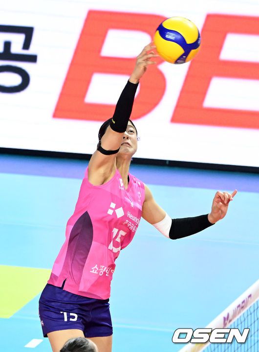 [OSEN=인천, 이대선 기자] 16일 삼산월드체육관에서 프로배구 진에어 2025~26 V리그 흥국생명과 정관장의 경기가 열렸다. 정관장은 3승 4패(승점7), 흥국생명은 2승 5패(승점7)로 5, 6위에 자리하고 있다. 1세트 흥국생명 박민지가 공격을 시도하고 있다. 2025.11.16 /sunday@osen.co.kr