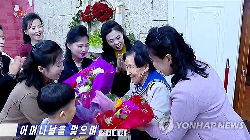 (서울=연합뉴스) 북한 주민들이 '어머니날'을 뜻깊게 맞이했다고 조선중앙TV가 16일 보도했다. 북한은 2012년 5월 최고인민회의 상임위원회 정령으로 매년 11월 16일을 어머니날로 제정하여 기념하고 있다. [조선중앙TV 화면] 2025.11.16