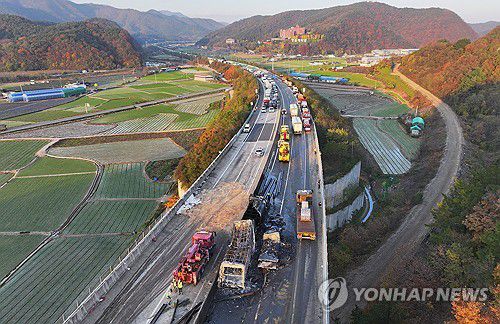 유조차 사고 발생한 상주영천고속도로 |