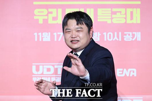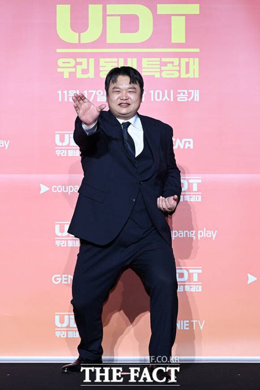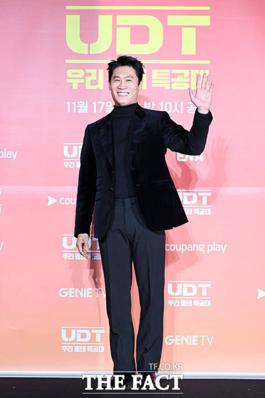 [더팩트ㅣ서예원 기자] 배우 이정하와 진선규, 윤계상, 김지현, 고규필(왼쪽부터)이 17일 오후 서울 광진구 풀만 앰버서더 서울 이스트폴 그랜드 볼룸에서 열린 쿠팡플레이X지니TV 오리지널 시리즈 ‘UDT:우리 동네 특공대’ 제작발표회에 참석해 포즈를 취하고 있다.