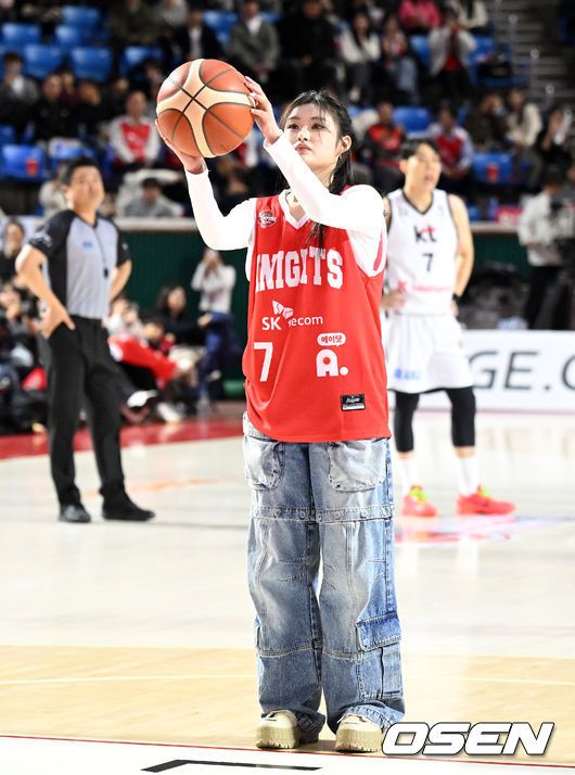 경기에 앞서 그룹 피프티피프티 아테나가 시투를 하고 있다. 2025.11.17 /sunday@osen.co.kr