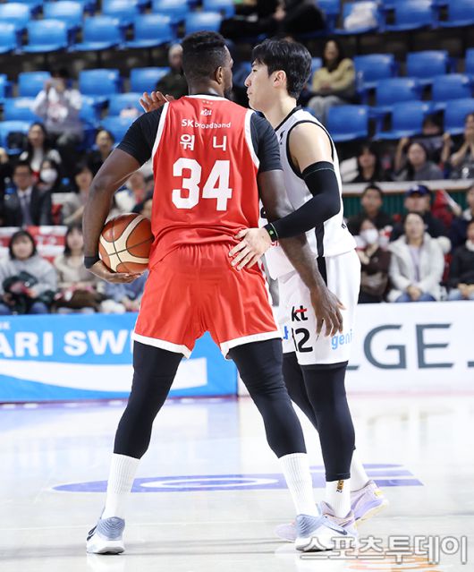 [스포츠투데이 권광일 기자] 2025-2026 LG전자 프로농구 서울SK와 수원KT의 경기가 17일 서울학생체육관에서 열렸다. 수원KT 문정현이 미안한 표현을 하고 있다. 2025.11.17. [스포츠투데이 권광일 기자 sports@stoo.com]