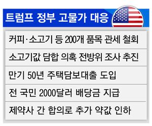 취임 후 첫 선거에서 완패한 트럼프 정부가 표심을 가른 고물가와 전쟁에 나섰다. 커피, 바나나 등 200여개 생필품 관세를 철회한데다 전국민 2000달러 배당금, 50년 만기 주택담보대출 도입 등으로 소비심리 회복에 안간힘을 쓰고 있다. 다만 정책적으로 물가를 단기간에 낮추는게 불가능하다는 지적이 나온다.