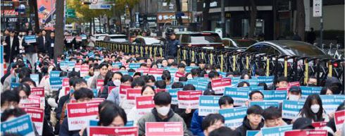 서울교통공사 조합원들이 2024년 11월 20일 열린 ‘임금과 복지 정상화를 위한 쟁의에 참여하고 있다.(사진=서울교통공사 올바른노동조합) |