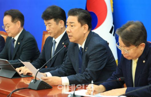 [이데일리 노진환 기자] 김병기 더불어민주당 원내대표가 18일 오전 서울 여의도 국회에서 열린 원내대책회의에서 모두발언을 하고 있다.