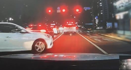 작년 2월 29일 오후 10시 40분쯤 양주시 옥정동의 도로에서 차선침범 차량을 대상으로 고의적 충돌사고를 낸 장면./경기북부경찰청 |
