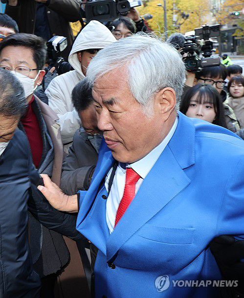 (서울=연합뉴스) 이진욱 기자 = 서울서부지법 폭력 난동 사태의 배후로 지목된 전광훈 사랑제일교회 목사가 18일 피의자 신분으로 서울경찰청에 출석하고 있다. 2025.11.18