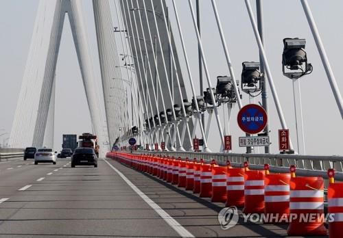 인천대교 운영사는 주탑 부근 양방향 3㎞(각 1.5㎞) 구간 갓길에 플라스틱 드럼통 600여개를 지난달 재설치했다고 밝혔습니다.