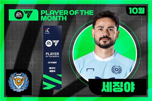 한국프로축구연맹은 18일 "세장야가 2025년 10월 'EA스포츠 이달의 선수상'을 수상했다"고 발표했다.