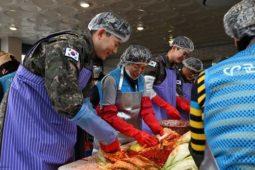 김치 버무리는 장병 |
