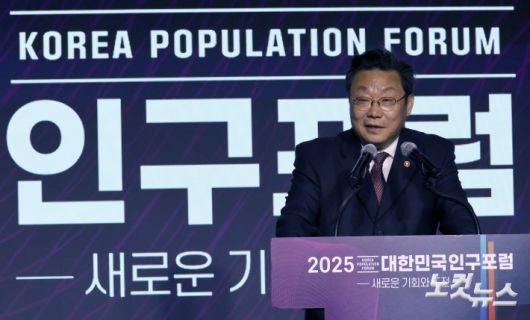주형환 저출산고령사회위원회 부위원장이 18일 서울 여의도 FKI타워 그랜드볼룸에서 CBS와 보건복지부 주최로 열린 '2025 대한민국 인구포럼 - 새로운 기회와 도전'에서 축사를 하고 있다.저작권자 © CBS 노컷뉴스 무단전재 및 재배포 금지