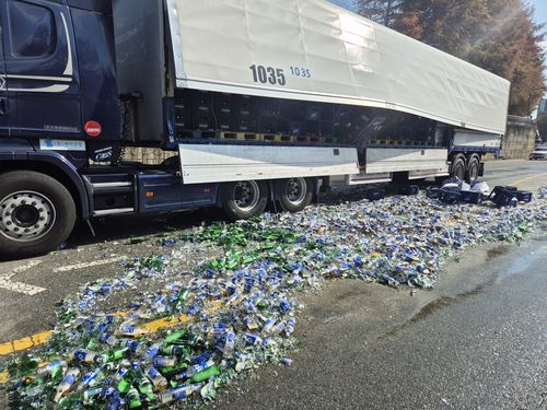 (광주·광양=연합뉴스) 정다움 기자 = 광주·전남 도로에서 달리던 화물차에서 맥주병이 떨어지거나 트레일러가 전도되는 사고가 잇따랐다.