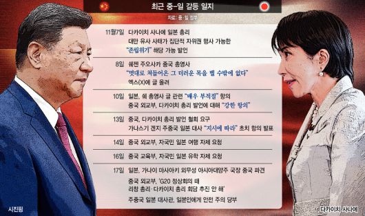 중국 중앙방송(CCTV)이 운영하는 소셜미디어 ‘위위안탄톈’의 지난 15일 게시글은 현재 일본을 겨냥한 중국 정부의 태도를 그대로 보여준다. 다카이치 사나에 일본 총리와 시진핑 중국 국가 주석는 지난달 31일 “건설적, 안정적 관계를 쌓자”며 경주 아펙(APEC·아시아태평양경제협력체) 정상회의에서 첫 악수를 나눴다. 불과 20여일 만에 역대 최악의 중·일 관계 가능성이 거론되는 데는 다카이치 총리의 ‘경솔한 입’이 발단이 됐다는 비판이 나온다.