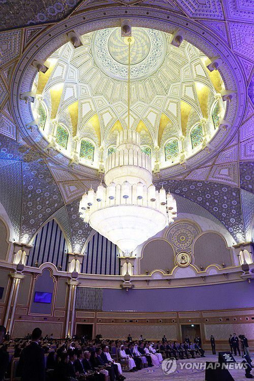 (아부다비=연합뉴스) 김도훈 기자 = 18일(현지시간) 아랍에미리트(UAE) 아부다비 대통령궁에서 이재명 대통령과 김혜경 여사가 참석한 가운데 한-UAE 문화교류행사가 진행되고 있다. 2025.11.18