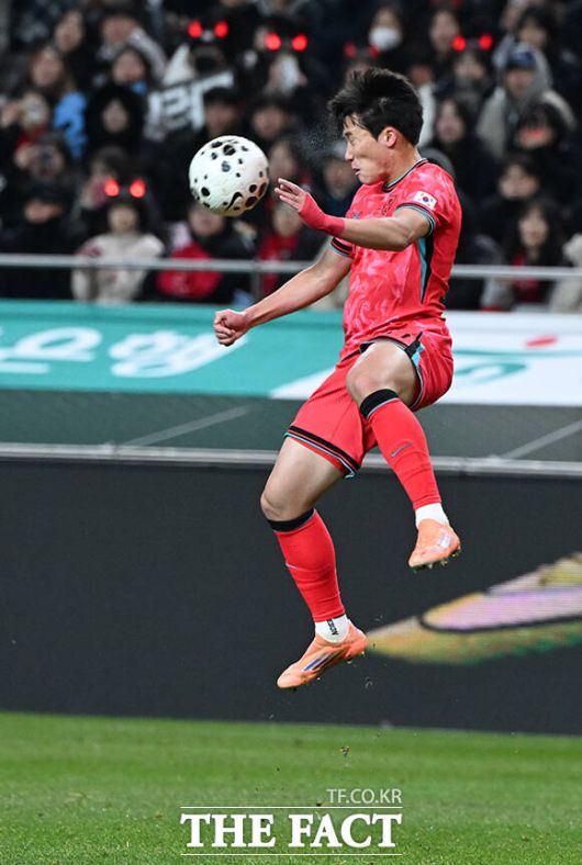 이날 홍명보호는 가나와의 올해 마지막 A매치 평가전을 1-0 승리로 마무리했다. 이태석은 후반 18분 이강인의 크로스를 반대편에서 헤더로 마무리해 A매치 데뷔골을 결승골로 완성시켰다.