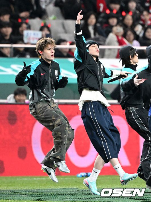 하프타임 때 그룹 코르티스 제임스, 건호가 공연을 하고 있다. 2025.11.18 /sunday@osen.co.kr