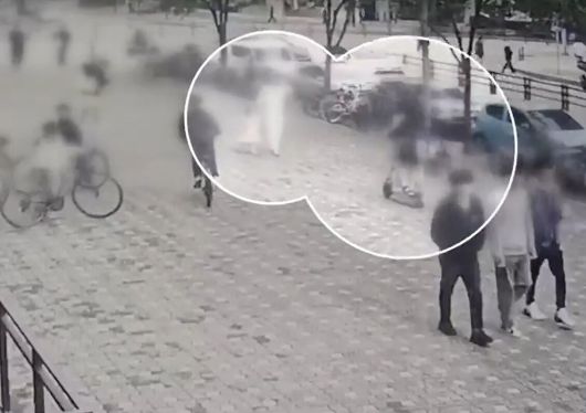 사고가 발생하기 직전 전동킥보드가 달려오는 장면. /KBS |