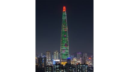 롯데물산이 다음 달 23일까지 롯데월드타워 외벽에서 크리스마스를 주제로 한 대형 영상물 '미디어 파사드' 콘텐츠를 송출합니다.