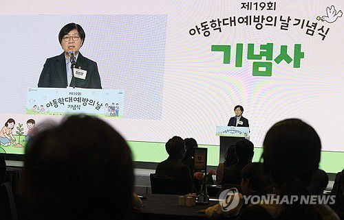 (서울=연합뉴스) 정은경 보건복지부 장관이 19일 서울시 서초구 JW 메리어트 서울에서 열린 제19회 아동학대예방의 날 기념식에서 기념사를 하고 있다. 2025.11.19 [보건복지부 제공. 재판매 및 DB 금지]
