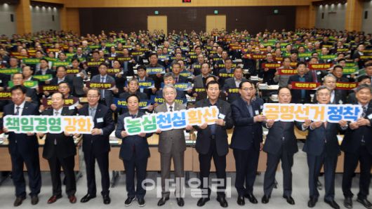 [이데일리 김태형 기자] 농협중앙회(회장 강호동)는 19일 대강당에서 열린 제3차 임시대의원회에 앞서「청렴농협 구현 결의대회」를 개최하였다.